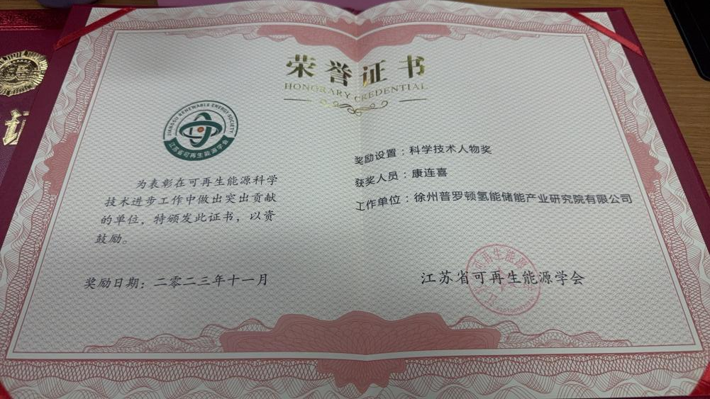 質子動力榮獲2023年江蘇省可再生能源學會科學技術獎和人物獎兩大獎項